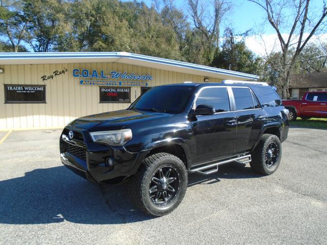 Local Trade, Fully Serviced, ready to roll. It has some cosmetics but its overall in very nice shape. 3rd row. Seat covers on it are new, so will form fit better with the heat. For now, they look crappy. The leather underneath is there, just worn. Nothing you can't sit on, just not the prettiest in the world. For a BEEFY 4Runner, 3rd row, leather, nav, with everything working, as well as upgraded meaty tires, this is a deal.. We BOTH know it. I've taken a picture of the cosmetics on exterior so there's no surprise. It's priced WITH the cosmetics factored in. There won't be a discount when you point it out to me. Good attitudes get you a deal here. NOT FINANCABLE with marginal or crap credit, no matter how much down, unless its 16988.00. Questions, call or text Ray at 251-689-7744 Carfax shows structural, that's law due to the lift; not from an accident. CLEAN TITLE
